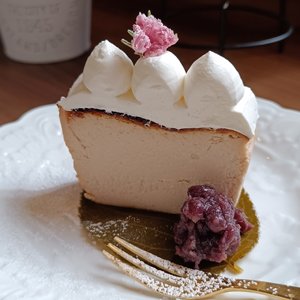 桜香る濃厚なバスクチーズケーキに、ほんのりと塩味が広がる、春の訪れを感じる逸品。